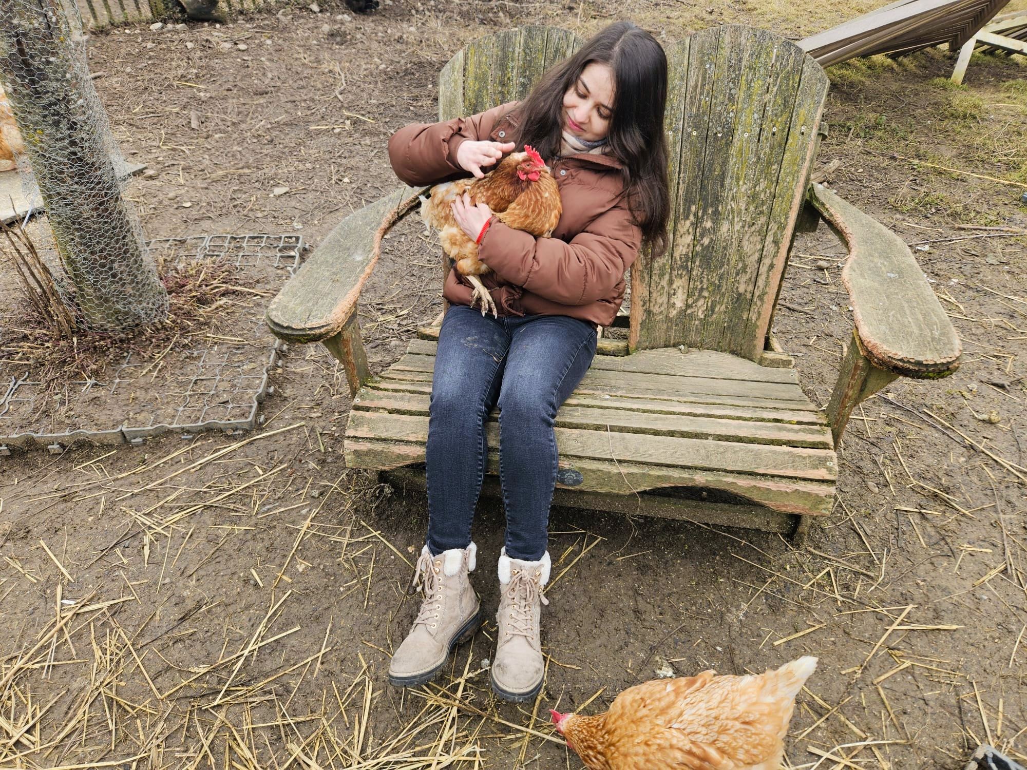 - Marita the hen (Hof Narr): Marita was bred as a hybrid laying hen and lived with nearly 2,000 others in an egg production facility. When the farmers decided to transition their farm into a sanctuary, all the hens were rehomed. Marita came to Hof Narr with 19 others, where she now lives freely with her flock.